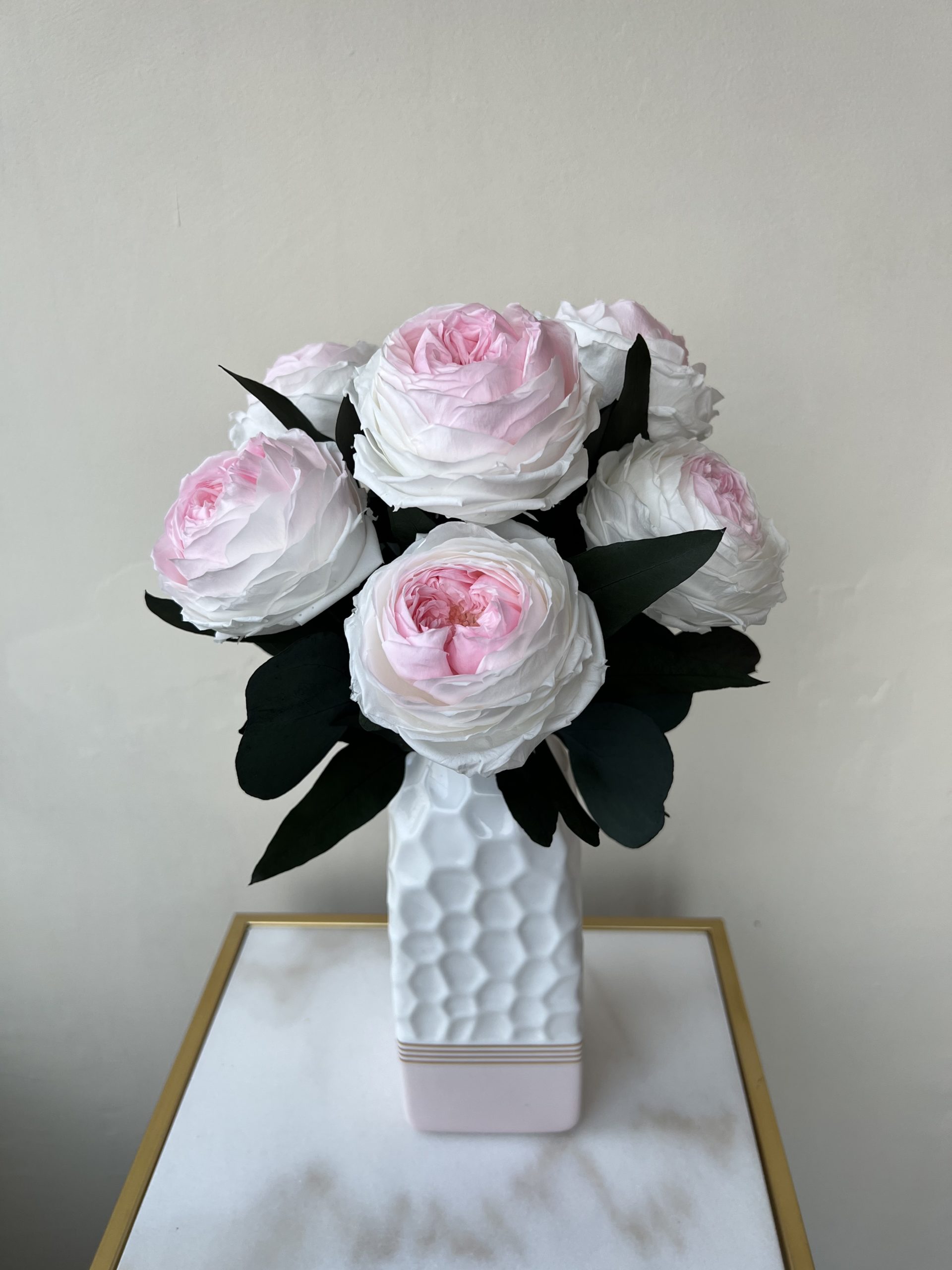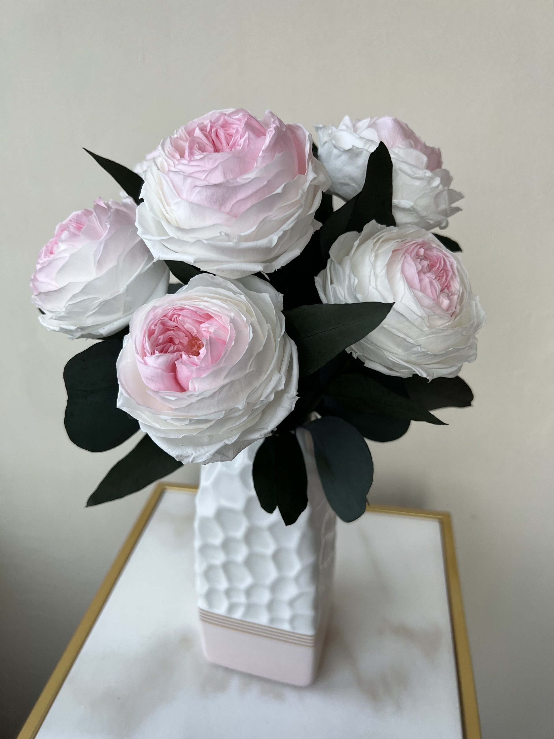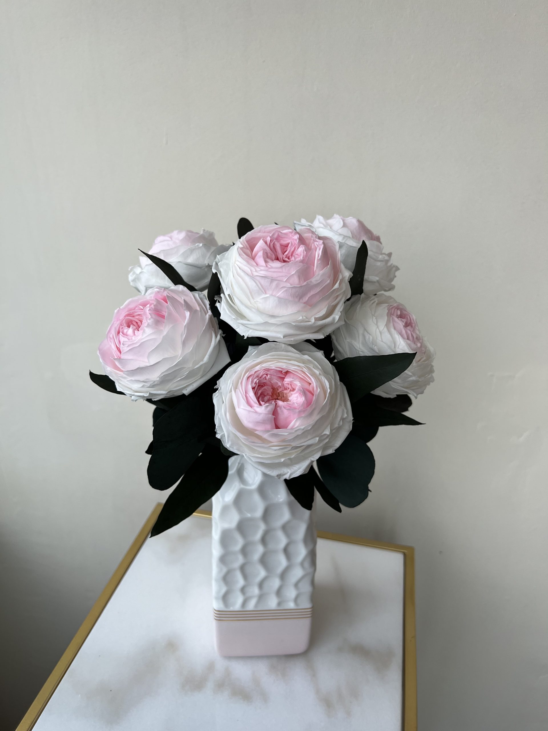 Стабилизированный букет из пионовидных роз «Робкий поцелуй»