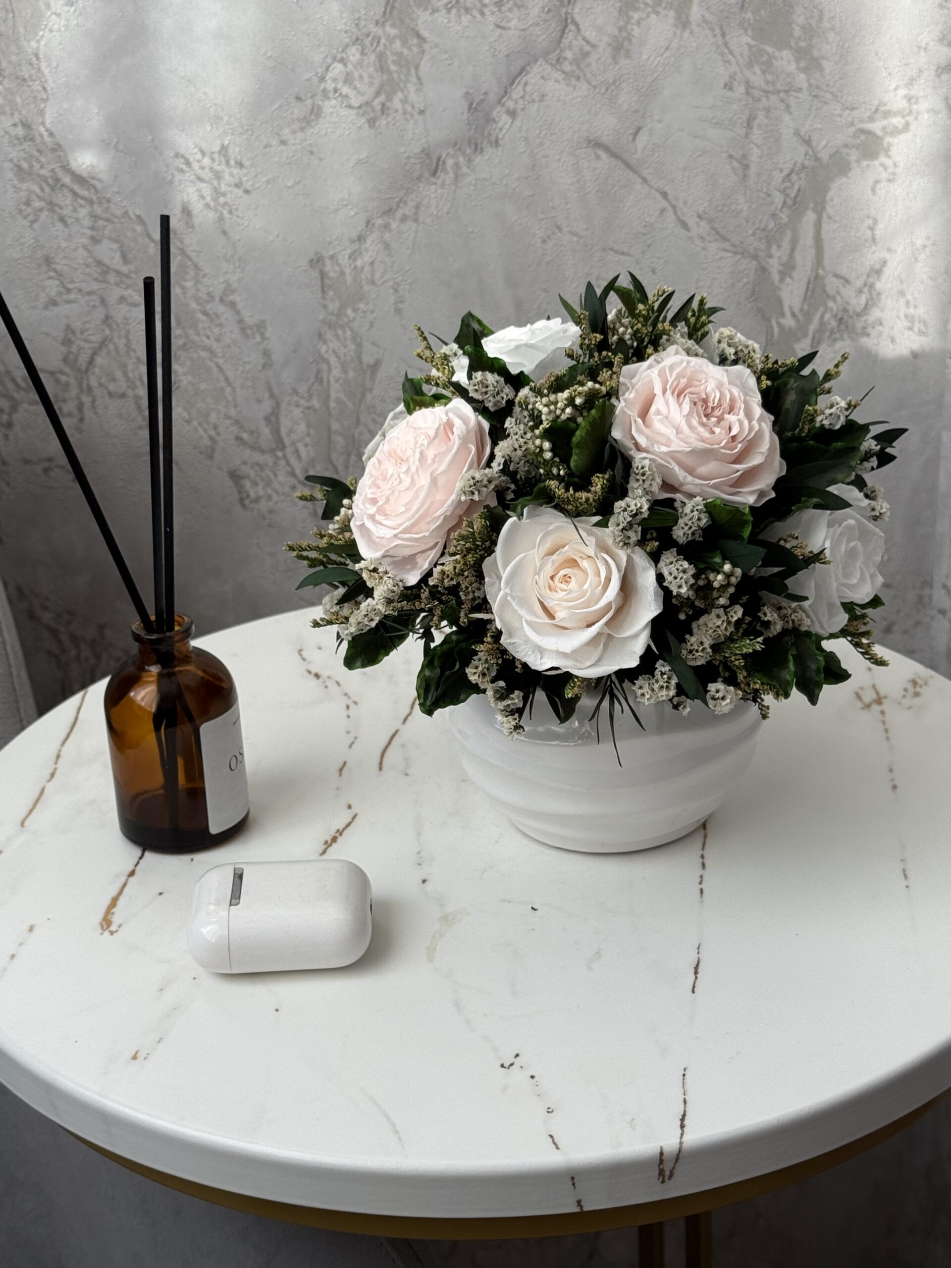 Интерьерная композиция из стабилизированных цветов «Парижский шик»
